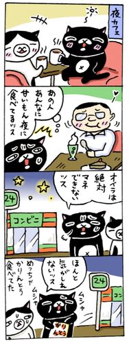 …かりんとう結局一袋食べてた。 夜カフェ(コメダ珈琲)で、隣りで美味しそうなものを 食べている人を見て、影響受けちゃったみたいです。 夜のグルメ番組もかなり危険ですね。 お夜食、食べたくなってきちゃったり… 気をつけねば~(>_<) コメダ珈琲のマンガ…