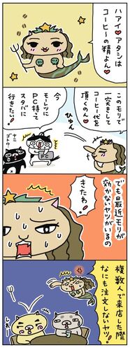 今日は黒猫クインシーが、ネットの記事で、「カフェに複数人で来店した際に、なにも注文しない人がいる」というのを読んでおどろいていたので、備忘録的にマンガに描いてみました。そういえばこの間、黒猫とパン屋さんのイートインコーナーでお茶していた時…