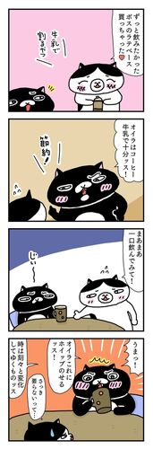 挙げ句の果てにカフェミュージックまで流しだす黒猫クインシー。 「次はホイップクリーム買うッスよ!」by黒猫クインシー 「あれっ、節約は?」by富士額わがはい 「?なんのことッスか?(・o・)」by黒猫クインシー 【BOSS ラテベース】 サントリー ボス ラテ…